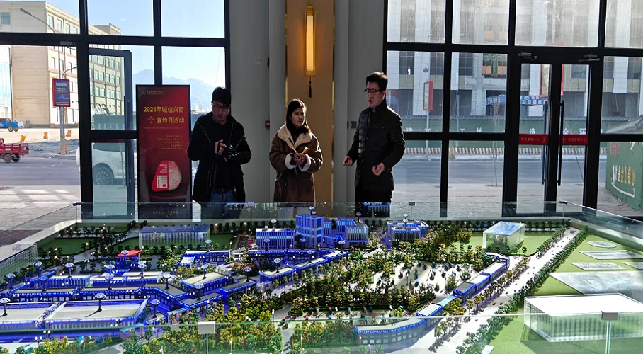 公司副总经理车越向采访团阐述了园区的地理位置优势,强调了其在区域物流网络中的战略地位。此外,还介绍了园区内各项基础设施的建设进度。采访团表示,青新藏(格尔木)陆港商旅物流中心作为西部地区的物流枢纽,不仅在地理位置上具有得天独厚的优势,而且在促进区域经济发展、加强国内外贸易往来方面扮演着至关重要的角色,其战略地位和发展潜力令人瞩目。将把新闻报道推广到更广泛的受众群体中去,让更多的人了解青新藏(格尔木)陆港商旅物流中心。车越表示,希望通过媒体的广泛传播,让更多的人了解园区的发展理念和未来规划,共同见证西部地区物流业的辉煌未来。